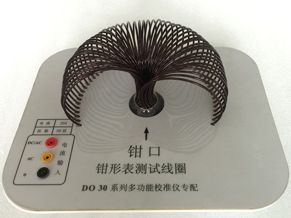 b、測(cè)指針式交流鉗形表時(shí)(大表),將恒流源輸出連接線接到測(cè)試線圈面板上的AC孔與*孔(公共端)上。